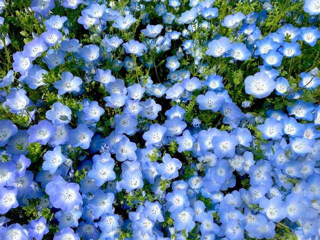 可愛く見せたい日はピンクが定番ですが、ブルーは甘さ控えめの華やかさが得意。
