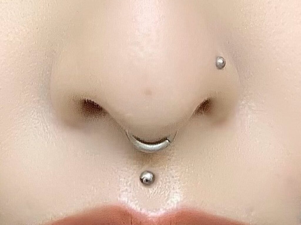 メデューサピアスは、上唇の中央、鼻と唇の間にあるくぼみ(人中)に開けるピアスのことです。