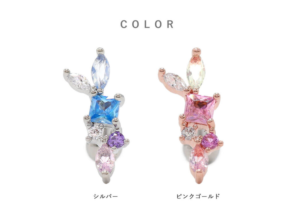 ファーストピアスのイメージが強いストレートバーベルですが、色付きのバーベルを使用してコーディネートを引き立たせるのは軟骨ピアス上級者がよく使うテクニックです。今回はライトブルーを使ってみました♪