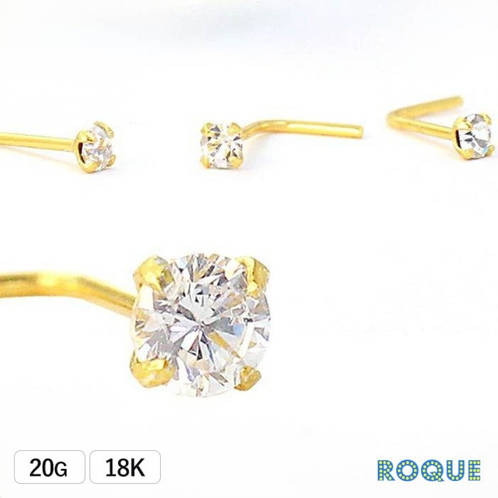 鼻ピアス 20G ボディピアス 18金(コーティング) 18K CZ立て爪トップ スクリュー(TOP1.5mm)[鼻 ピアス 鼻ピ][ボディーピアス](1個売り)◆オマケ革命◆