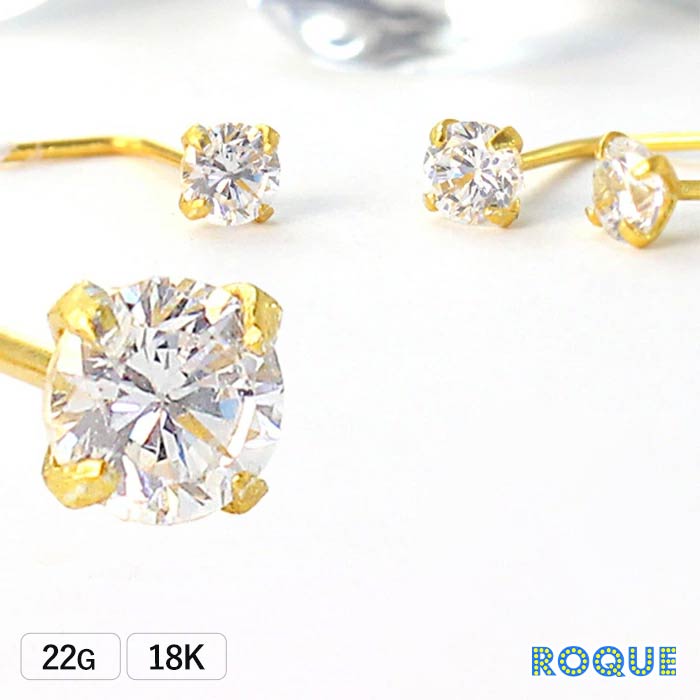 鼻ピアス 22G ボディピアス 18金(コーティング) 18K CZ立て爪トップ スクリュー(TOP3mm)[鼻 ピアス 鼻ピ][ボディーピアス](1個売り)◆オマケ革命◆
