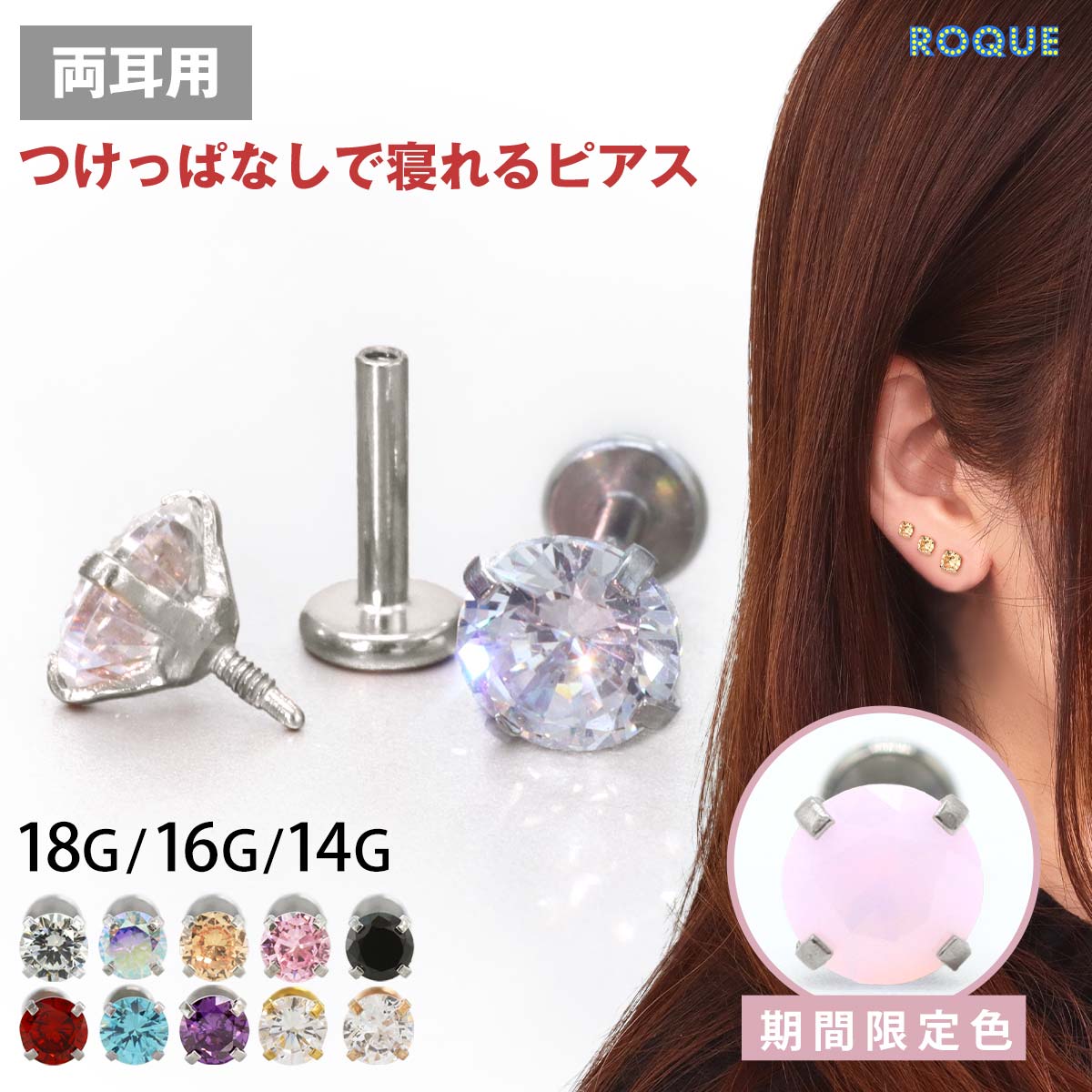軟骨 ピアス ボディピアス 16G 14G つけっぱなし トラガス ラブレットスタッド 立て爪 CZ インターナル(1個売り)◆オマケ革命◆