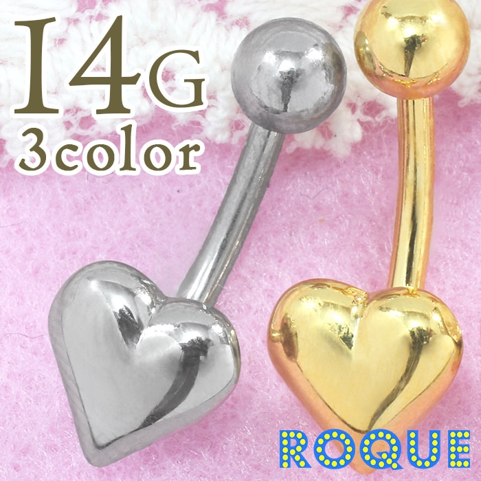 へそピアス 14G ボディピアス 立体ハート(1個売り)◆オマケ革命◆