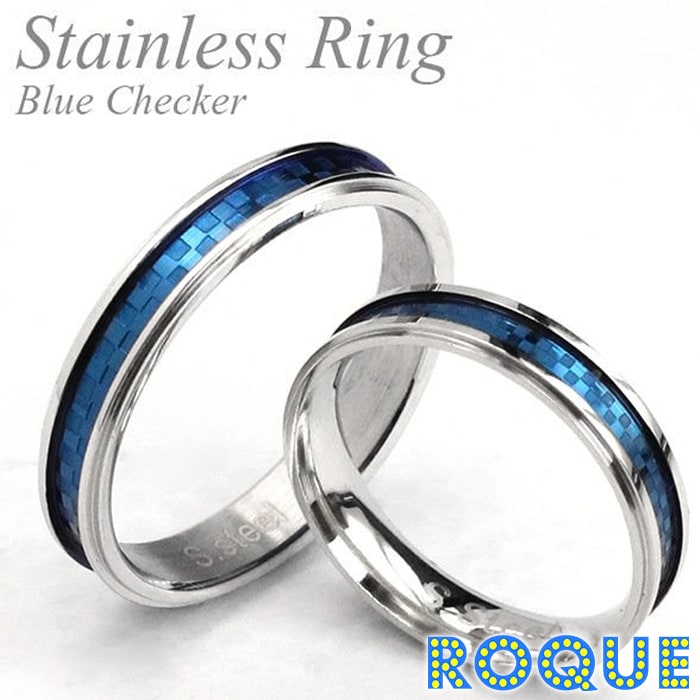 サージカルステンレスリング 指輪 ペアリング シルバー クールブルーチェッカー デザインリング(1個売り)◆オマケ革命◆