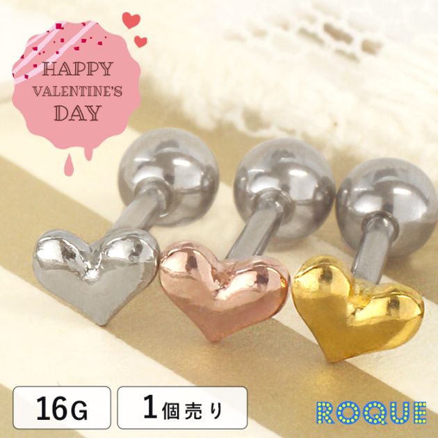ボディピアス 16G ぷっくりミニハート ストレートバーベル(1個売り)◆オマケ革命◆