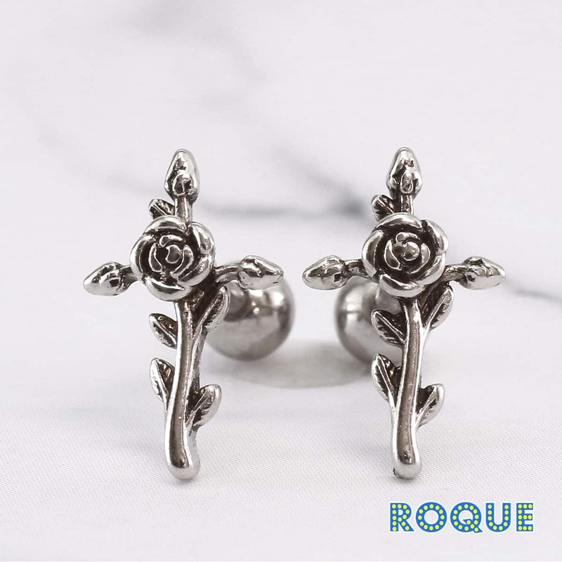 (1個売り)ボディピアス 16G ローズクロス ストレートバーベル◆オマケ革命◆