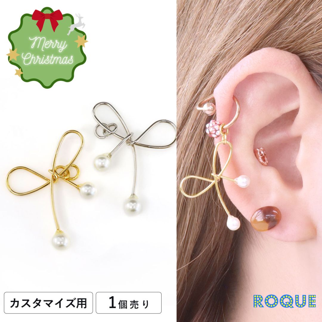 ボディピアス 20G 18G 16G 14G 対応 リボンパール カスタマイズ チャーム パーツ(1個売り)◆オマケ革命◆
