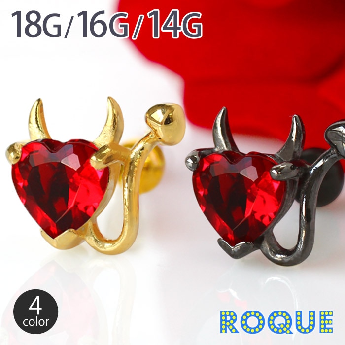 サージカルステンレス トラガス 16G 14G用 ボディピアス デビルハートキャッチ 小悪魔モデル カスタマイズ(1個売り)◆オマケ革命◆