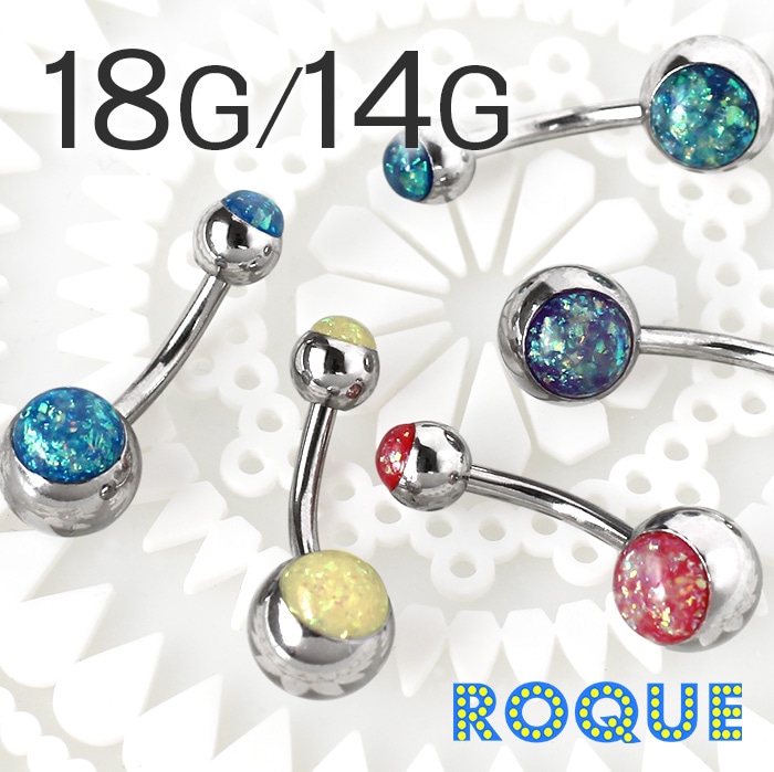 へそピアス 14G ボディピアス 立て爪シンセティックオパール シンプル(1個売り)◆オマケ革命◆