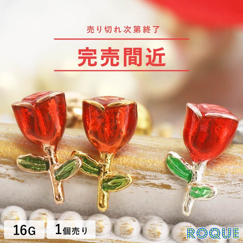 ボディピアス 16G 立体ローズ ストレートバーベル(1個売り)◆オマケ革命◆