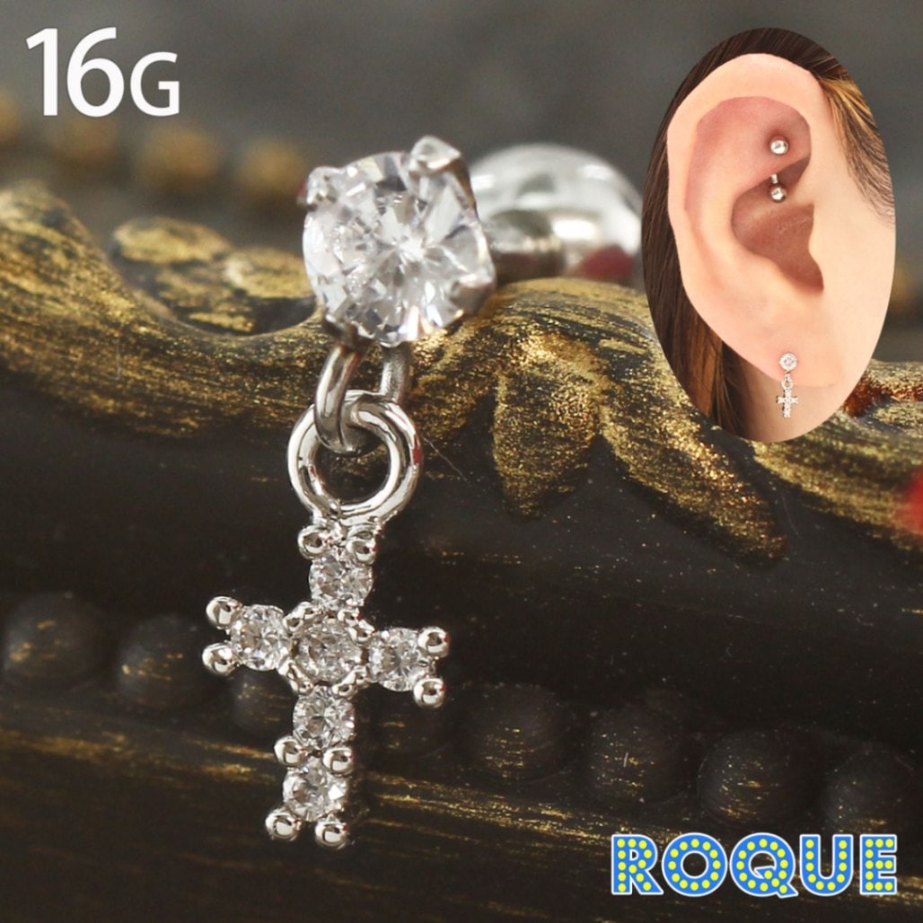 ボディピアス 16G クロス ドロップ チャーム ストレートバーベル ストレートバーベル(1個売り)◆オマケ革命◆