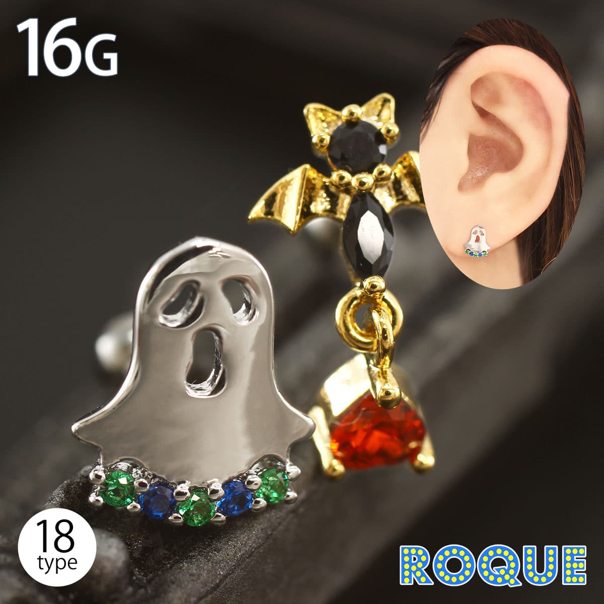(2個セット)両耳用 18G ベア ジュエル フープ ピアス セット◆オマケ革命◆