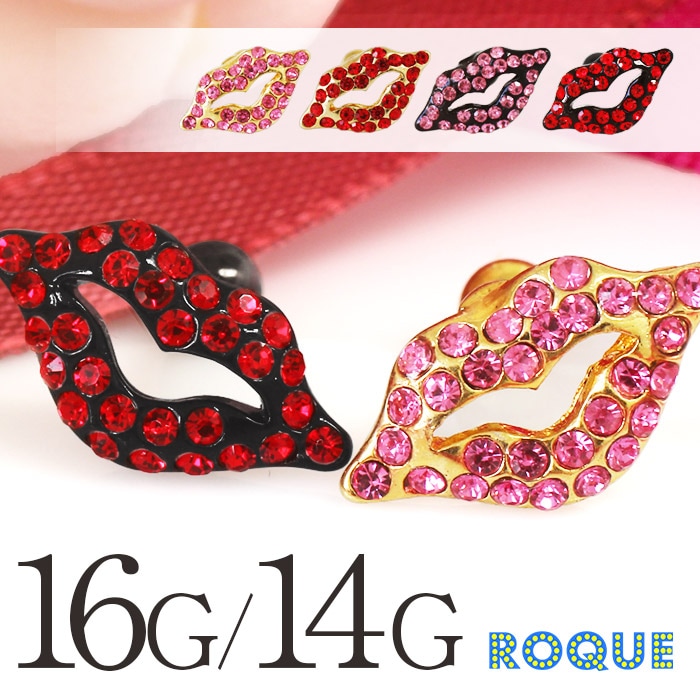 ボディピアス 16G 14G リップモチーフパヴェストレートバーベル(1個売り)◆オマケ革命◆