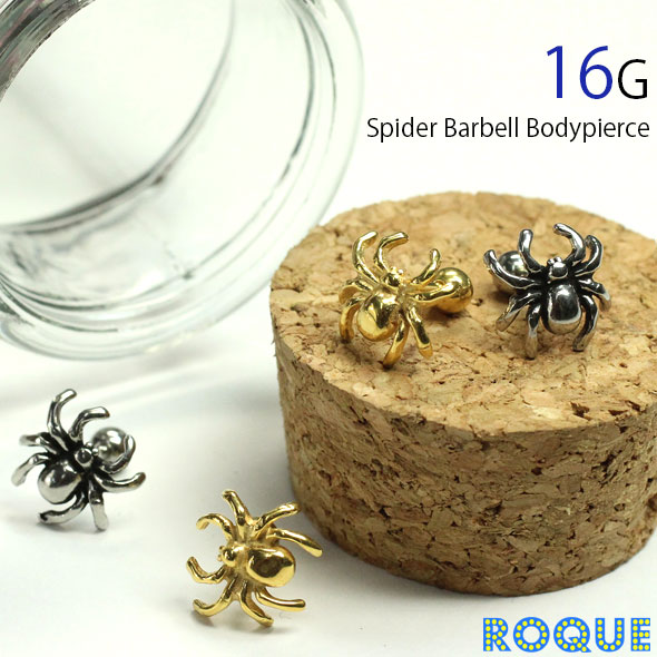 ボディピアス 16G 蜘蛛&ミニ悪魔の羽 ストレートバーベル(1個売り)◆オマケ革命◆