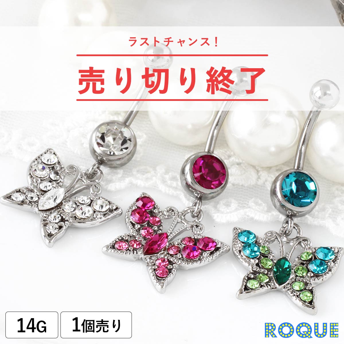 へそピアス 14G ボディピアス ラグジュアリー ジュエルバタフライ(1個売り)◆オマケ革命◆
