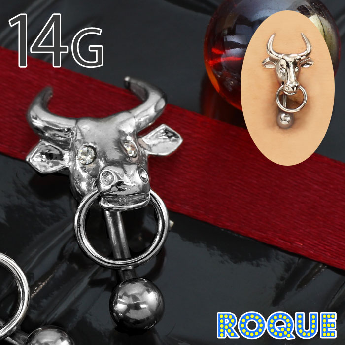 へそピアス 14G ボディピアス リアル牛モチーフ(1個売り)◆オマケ革命◆