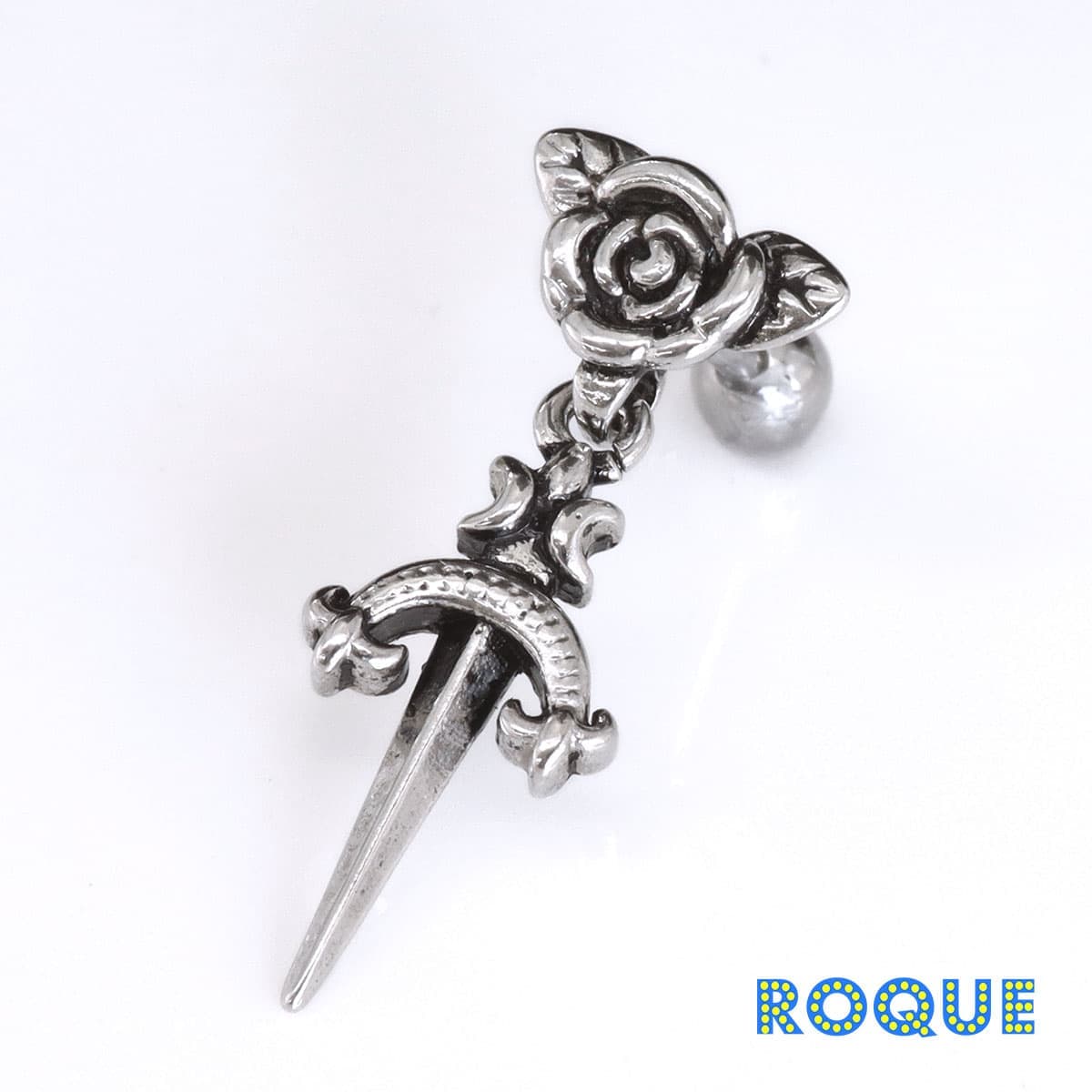 ボディピアス 16G ソードチャーム ローズ ストレートバーベル(1個売り)◆オマケ革命◆
