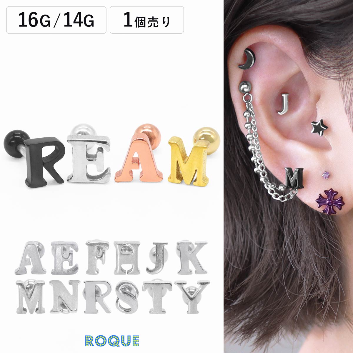 ボディピアス 16G 14G アルファベット ストレートバーベル(1個売り)◆オマケ革命◆
