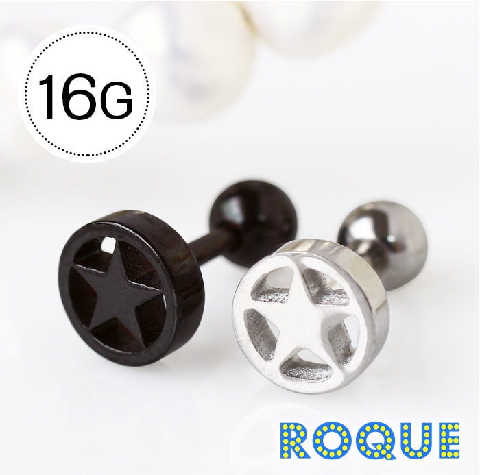 ボディピアス 16G ラウンドスター ストレートバーベル[ボディーピアス](1個売り)◆オマケ革命◆