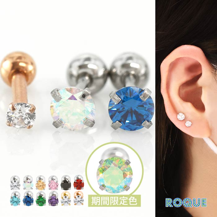 軟骨 ピアス 18G 16G 14G ボディピアス サイズが選べる!立て爪ラウンド&スタージュエルキャッチ ストレートバーベル セット(1個売り)◆オマケ革命◆