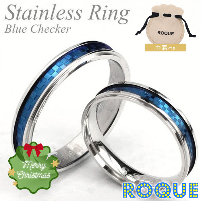 サージカルステンレスリング 指輪 ペアリング シルバー クールブルーチェッカー デザインリング(1個売り)◆オマケ革命◆