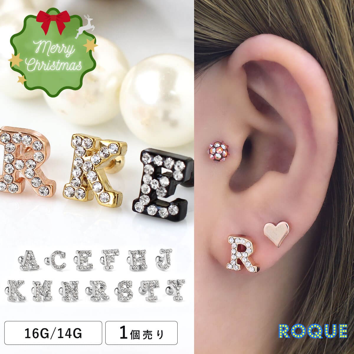 ボディピアス 16G 14G ジュエルアルファベットストレートバーベル(1個売り)◆オマケ革命◆