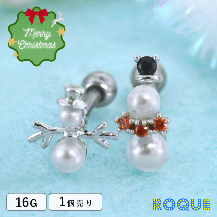 ボディピアス 16G 柊と雪だるま ストレートバーベル(1個売り)◆オマケ革命◆