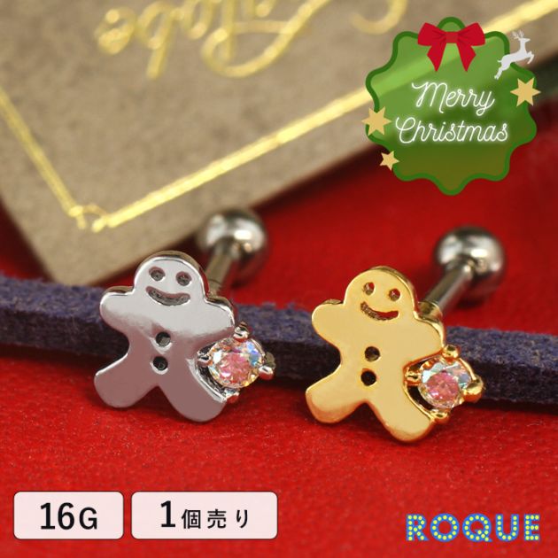 ボディピアス 16G ミニジンジャーブレッドマン ストレートバーベル(1個売り)◆オマケ革命◆