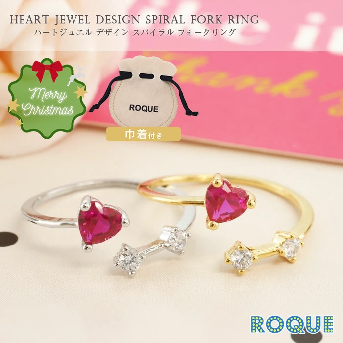 リング 指輪 ハートジュエルデザイン スパイラル ファッションリング(1個売り)◆オマケ革命◆