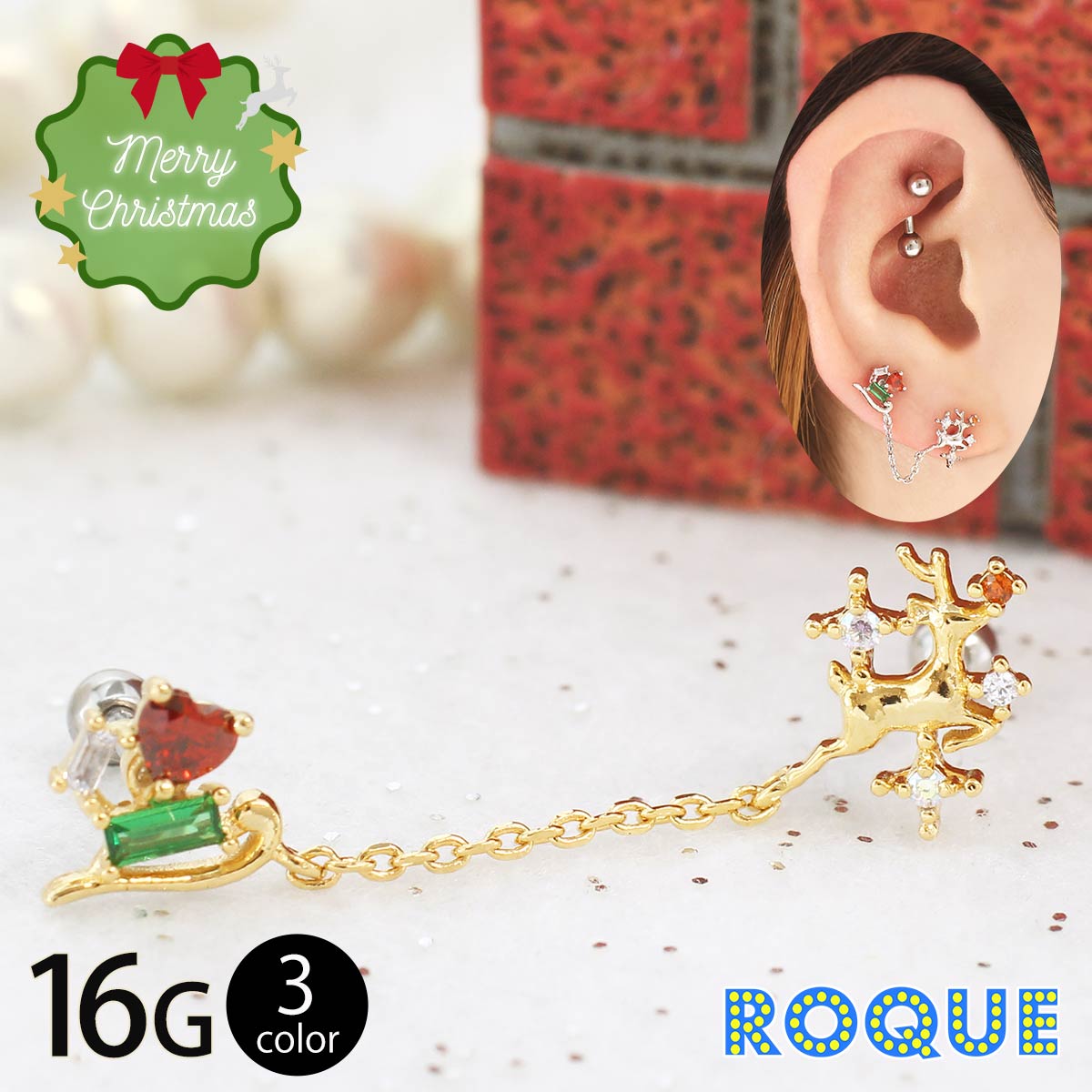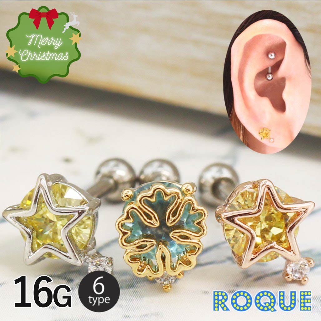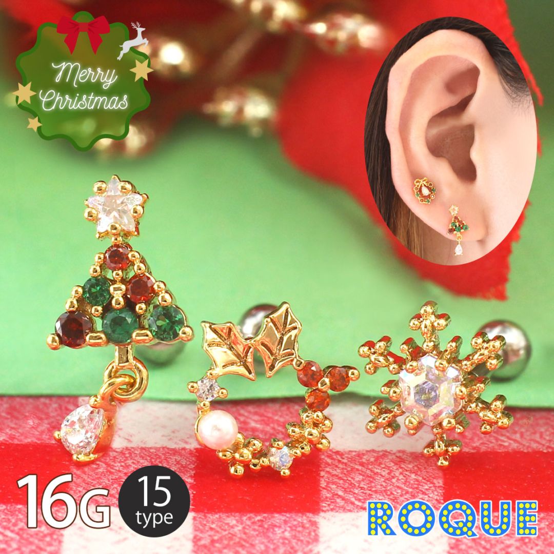 ボディピアス 16G クリスマスモチーフジュエル ストレートバーベル(1個売り)◆オマケ革命◆