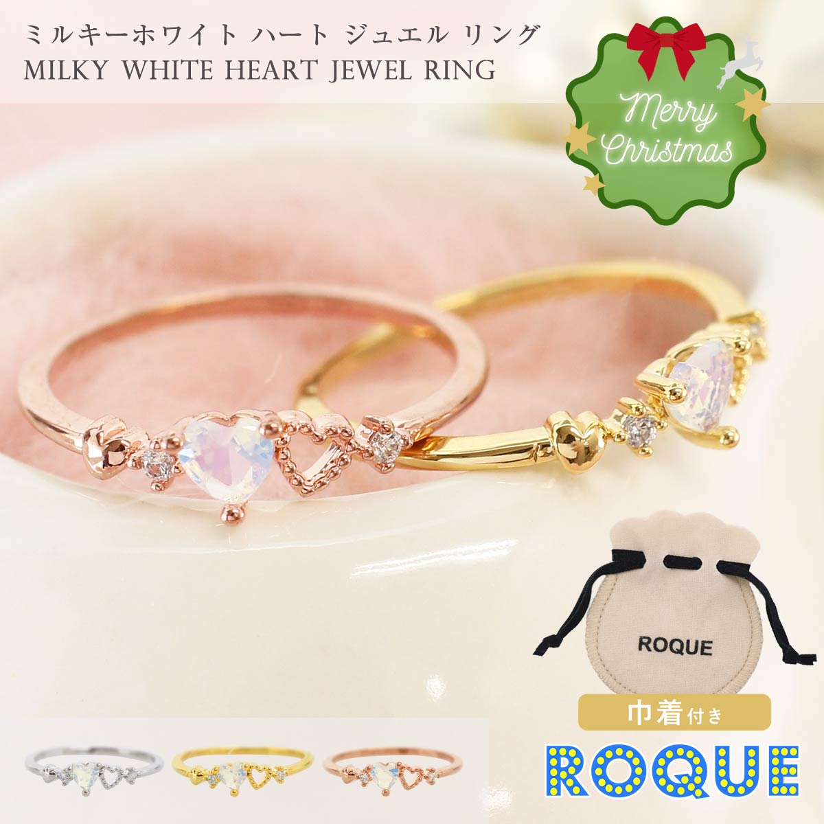 リング 指輪 ミルキーホワイト ハート ジュエル リング(1個売り)◆オマケ革命◆