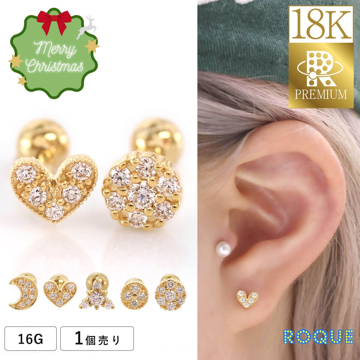 (選べるモチーフ) 16G 18Kゴールド 刻印 18金 ストレートバーベル ボディピアス(1個売り)◆オマケ革命◆