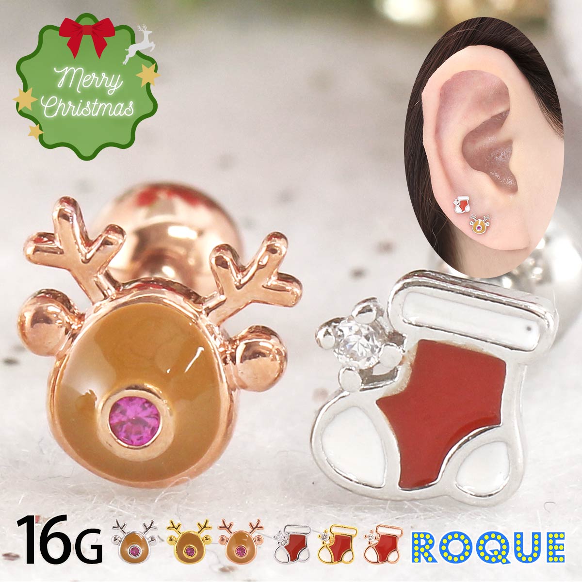 ボディピアス 16G クリスマス バラエティモチーフ ストレートバーベル(1個売り)◆オマケ革命◆
