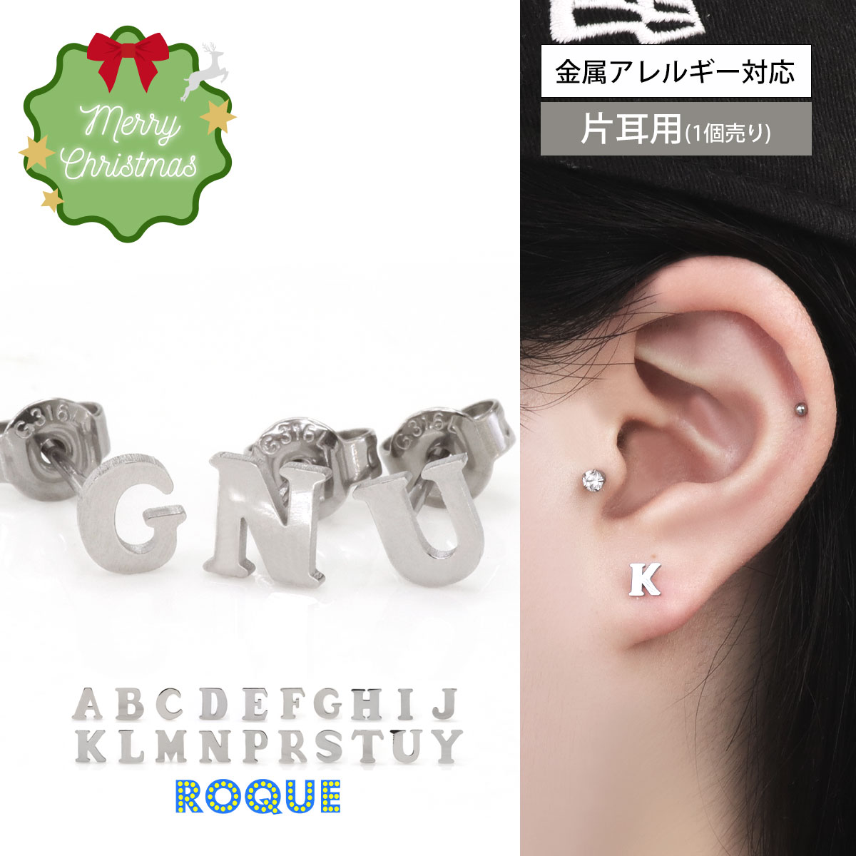 (片耳用)金属アレルギー対応 ピアス イニシャル スタッドピアス アルファベット ALLサージカルステンレス(1個売り)◆オマケ革命◆