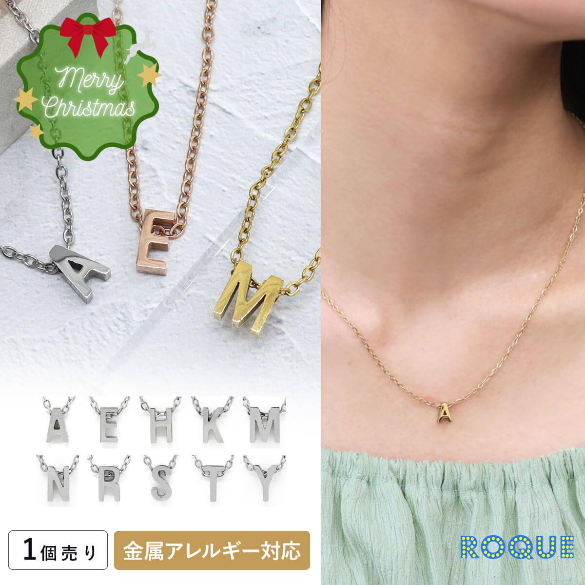 ネックレス イニシャル アルファベット ステンレス製 ペンダント(1個売り)◆オマケ革命◆