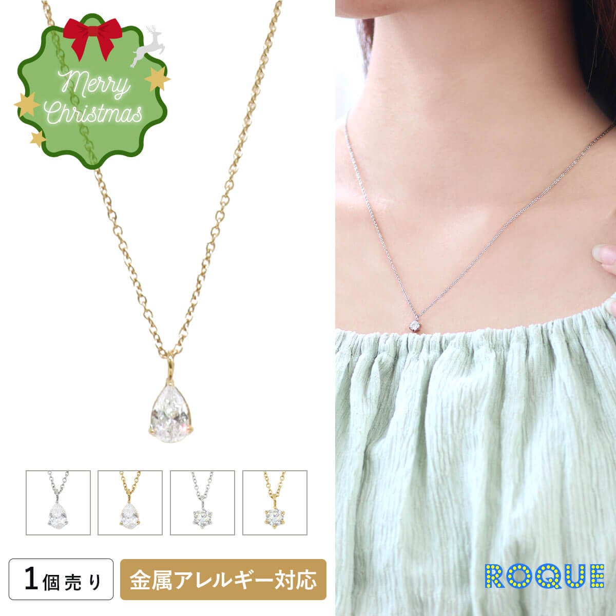 ネックレス シンプル ジュエル ステンレス製 PVDコーティング(1個売り)◆オマケ革命◆