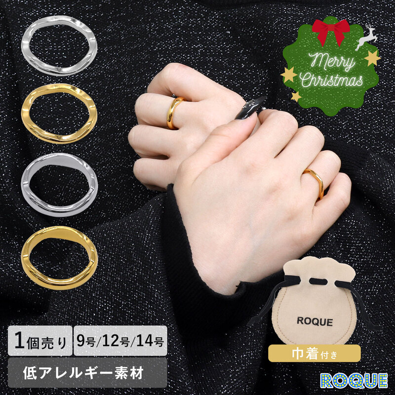 ステンレス 細太 シンプル ウェーブリング 9号 12号 14号 指輪(1個売り)◆オマケ革命◆