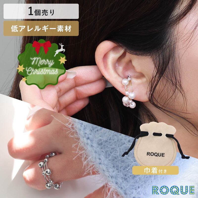 リング 指輪 ニュアンスボールデザイン パール 2WAY ファッションリング イヤーカフ カフリング フリーサイズ(1個売り)◆オマケ革命◆