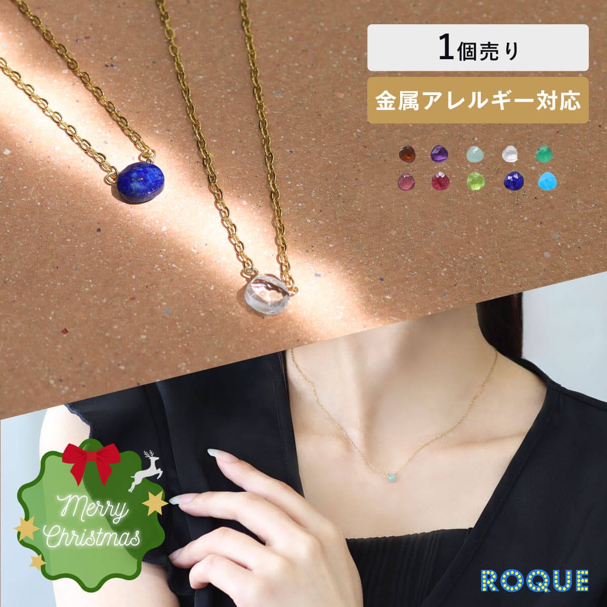 金属アレルギー対応 天然石 カラー ネックレス ステンレス製(1個売り)◆オマケ革命◆