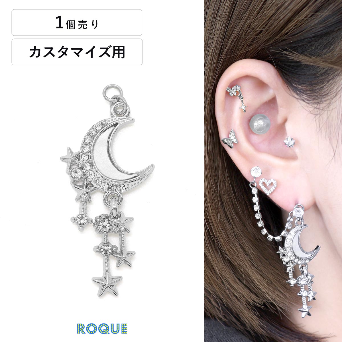 ボディピアス 20G 18G 16G 14G用 月チャーム カスタマイズ パーツ チャーム(1個売り)◆オマケ革命◆